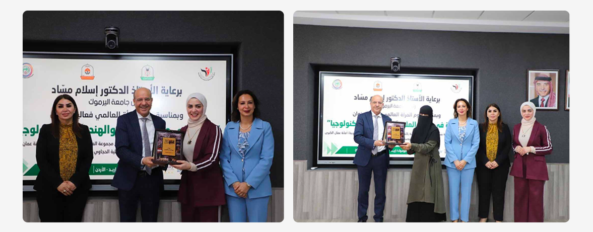 The Women in Engineering Affinity Group, Yarmouk University branch supervised by Dr. Yusra Obeidat, Head of the Electronics Engineering Department, organized an event titled "Women in STEM" in collaboration with the Princess Basma Center for Women's Studies and the Arab Cities Cultural Work Group, in celebration of International Women's Day. The event aimed to highlight the role of female engineers, scientists, and specialists in technology, emphasizing that women are not only part of the future but are leading it towards new horizons. The event featured a discussion session titled "Women n STEM" with participation from Prof. Hiyam Al-Qara'an from the Hijjawi Faculty for Engineering Technology, Prof. Sana'a Al-Odat and Porf. Sharifa Al-Sharif from the Faculty of Science, and Prof. Sawsan Shatnawi from the Faculty of Information Technology and Computer Science.