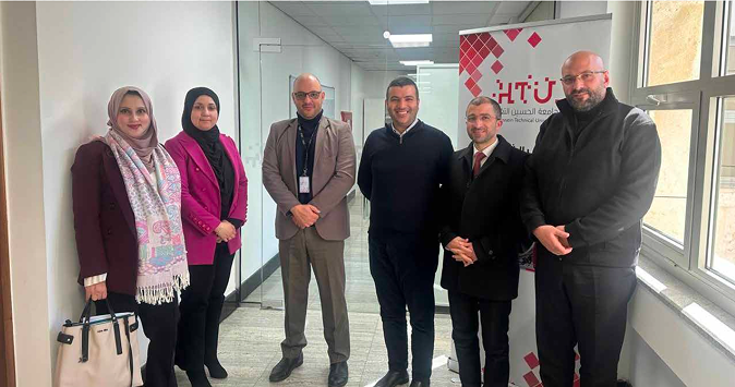 As part of its continuous efforts for improvement and exchanging experiences with higher education institutions in Jordan, the Hijjawi Faculty of Engineering Technology, represented by the Dean, Prof. Mohammad Alzubeidi, conducted a working visit to Al-Hussein Technical University. The visit aimed to learn about the university's experience with the Industry Partnership Office and explore opportunities for experience exchange in this area, thereby enhancing the capabilities of the newly established Career Development Unit at the Hijjawi Faculty for Engineering Technology. The visit also included Dr. Dania Bani Hani, Vice Dean of the Hijjawi Faculty for Engineering Technology. The visit featured an introduction to the experience of Al-Hussein Technical University in the Industry Partnership Office, showcasing the opportunities available for students in terms of field training, career development, student performance monitoring, and services aimed at increasing students' employment opportunities. Furthermore, the discussions addressed the efforts made by the Hijjawi Faculty of Engineering Technology to focus on student career development, including career preparation courses, industrial certifications, language packages, the artificial intelligence in engineering course, and the duration and nature of field training at the faculty. The visit also included discussions on the possibility of benefiting from Al-Hussein Technical University's experience in providing feedback on the content of career development courses and potential improvements, as well as leveraging the university's experience in organizing training workshops for students. Additionally, the potential to utilize the available courses on the university's platform to enhance students' extracurricular skills was explored.